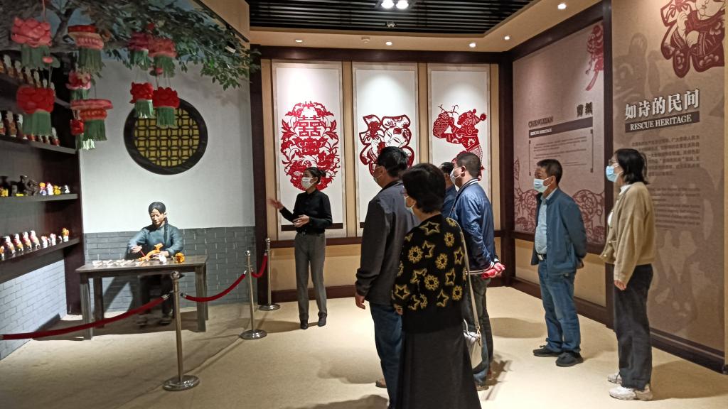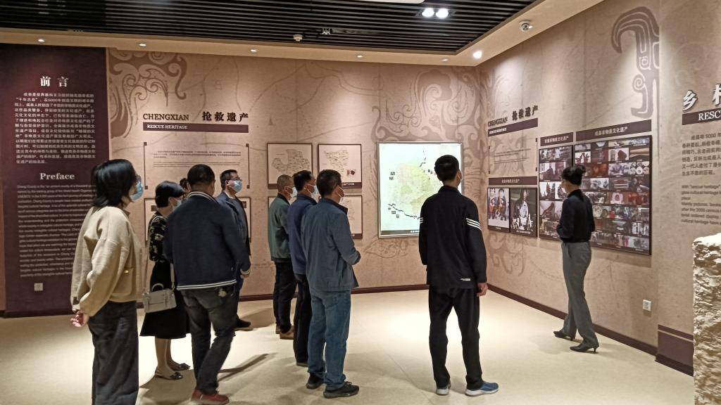 成县位于甘肃省东南部,两汉时期的文化历史非常深厚,留下了丰富的汉代文化遗产,著名的有全国重点文物保护单位东汉摩崖石刻《西狭颂》。履行疫情防控措施后,在解说员的带领下,大家先后参观了各个展厅。成县博物馆成立于2000年10月,现有文物藏品817件(套),其中,一级文物12件(套),二级文物36件(套),三级文物93件(套)。藏品种类有青铜器、铁器、瓷器、陶器、玉石器、书画等;博物馆内的藏品也以汉代青铜器和绿釉陶器文物为主,青铜器又以鎏金铜器为主要特色,有鎏金棺饰、鎏金铜钵和铜饰、青铜镜等;绿釉陶器主要有陶俑、陶鸡、陶井、陶灶、陶盆和陶甑等,另外展出了一部分五代、宋、元时期的瓷器。展厅中呈现的省、市、县级非物质遗产红川酿酒技术、竹南寨泥塑、城关镇高翘社火、沙坝罐罐窑、民俗、民间小曲、红川农民画等异彩纷呈,从不同的角度展示了成县作为千年古县的历史文明和文化传承。