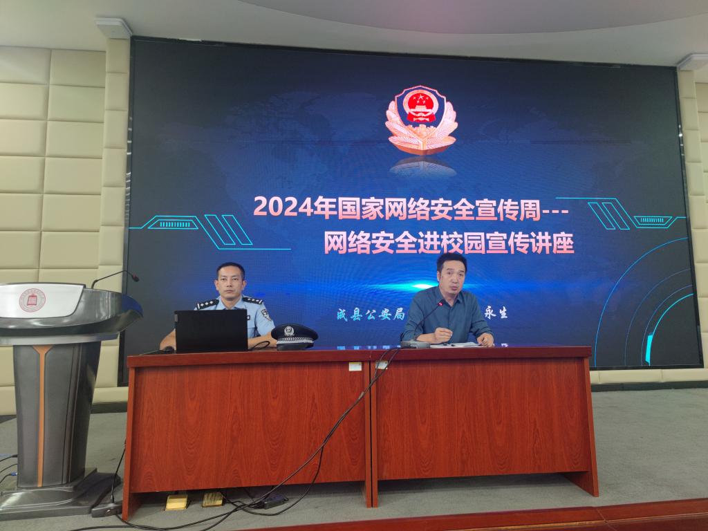 成县公安局民警为师生们带来一场精彩的网络安全知识讲座,结合实际案例,深入浅出地讲解了网络安全的重要性,常见的网络安全风险以及如何防范网络安全威胁等内容,让师生们对网络安全有了更加深刻的认识。