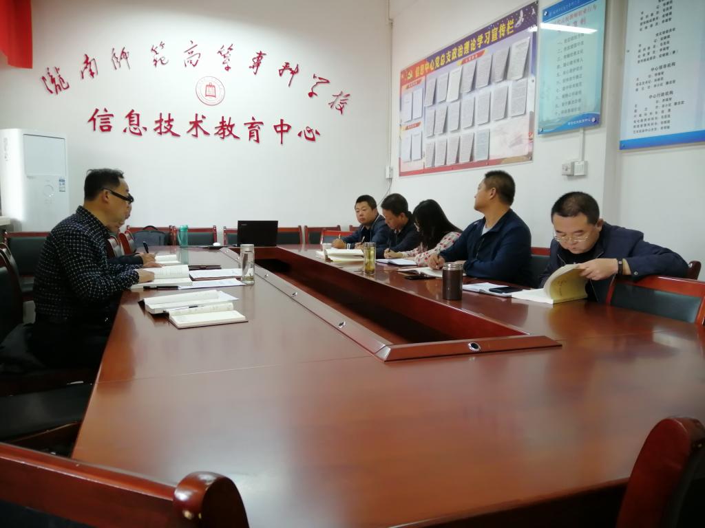9月26日下午,信息中心教师党支部召开党员大会,举行“不忘初心、牢记使命”主题教育第三次学习研讨会。中心全体党员参加学习研讨,党支部书记安晓瑞主持会议。